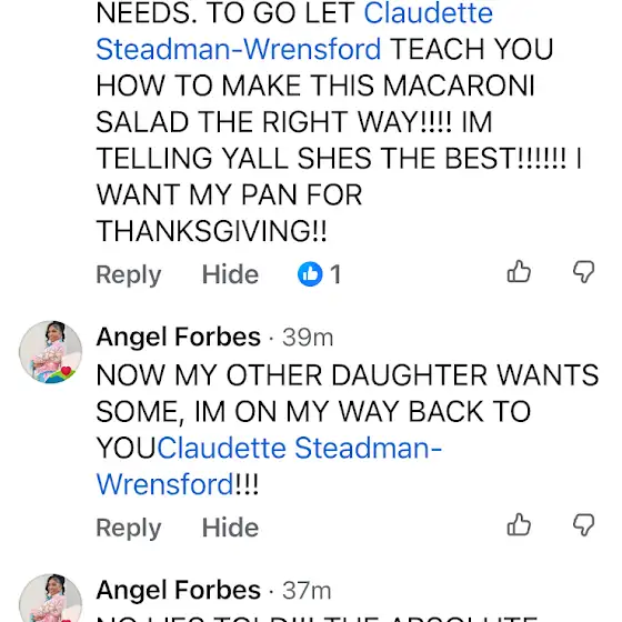 Try my macaroni salad, and you’ll want more. 406 East Hanlon Street