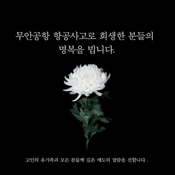 2024년 12월 29일 발생한 제주항공 참사로 인해 희생되신 분들께 깊은 애도를 표하며, 고인들의 명복을 진심으로 빕니다.