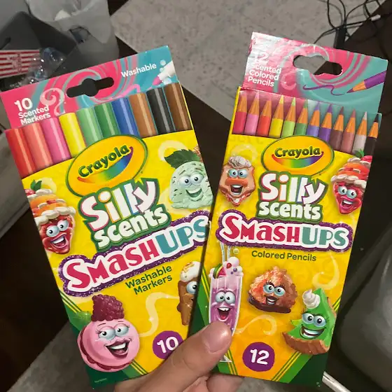 I bought a Hello Kitty and Friends, Care Bears, Disney, Stitch, SpongeBob SquarePants: I’m Ready and Beach Buds, and a Hello Kitty Coloring & Activity Book & Advanced Coloring at Five Below and I also bought a set of 10 and 12 Crayola Silly Scent Smash-Ups Washable Markers and Colored Pencils at Target.