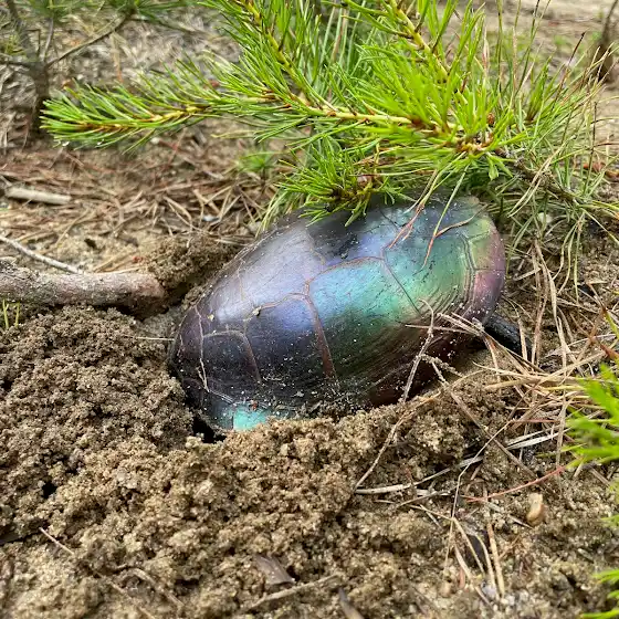 I have seen iridescent turtles before, but this one in Sudbury, MA was over the top! Video of her laying eggs to come.