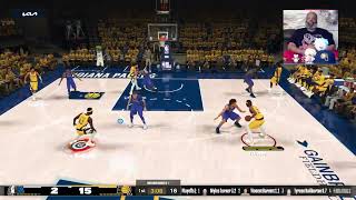 Andrew Nembhard draws the double team from Myles Turner who steps into a three point bucket. | #ski_