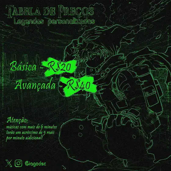 Salve rapaziada! Segue minha tabela de preços das minhas legendas personalizadas. Interessados chamem no privado das minhas redes sociais