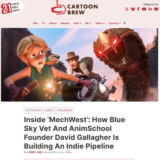 Very cool to see Cartoon Brew cover AnimSchool founder David Gallagher’s path to creating an animation school, an indie studio, and a 3D Animated series! Read about it here: www.cartoonbrew.com/interviews/mechwest-david-noah…