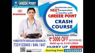 CAREER POINT IIT-JEE NEET - Hyderabad is your ultimate destination for mastering IIT-JEE and NEET exam preparation. Our channel offers expert-led video lectures, doubt-solving sessions, exam tips, strategy guides, and practice problems designed to help aspirants achieve top ranks. Whether you’re looking for Physics, Chemistry, Mathematics, or Biology, we provide comprehensive, easy-to-understand, and result-oriented content.