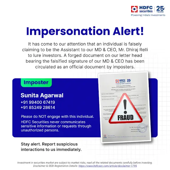 HDFC Securities will never ask for sensitive info via unauthorized contacts. Stay safe!