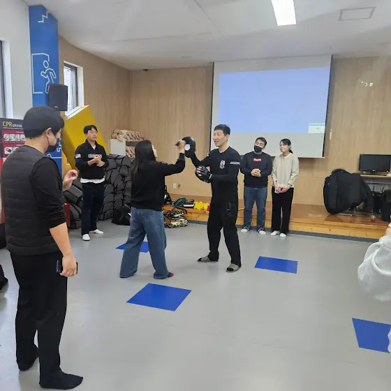 2025년 2월 08일성동구 성동생명안전배움터에서25 년 1차 이상동기범죄 예방 호신술 교육을 진행했습니다.영하 10도 이하의 강추위 속에예약해 주신 20명의 인원이 모두 참여해주셨고 자녀들에게 호신술을 알려 주시려아이들과 함께 참여 하신 부모님들 덕분에교육을 열심히 진행할 수 있었습니다.참여해주신 성동구민 여러분들과 어린이친구여러분들께 진심으로 감사인사드립니다.함께해주신 고강사님께도 감사합니다.