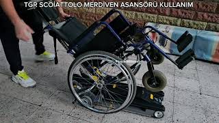 Pratik engelli asansörü ilk deneme. Engelli taşıyıcı kullanımı. Engelli arabası kullanımı. tırmanıcı