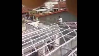 Kanopi Baja Ringan,Kanopi Atap Baja Ringan ini berukuran luas panjang 30m x 5m.Wa/Telp0821 6863 9543