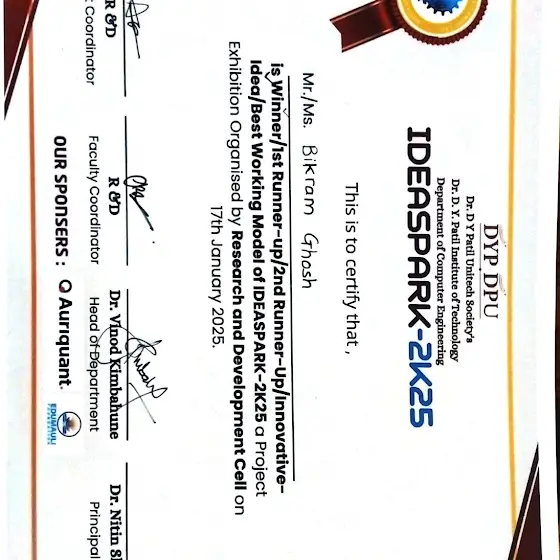 I'm thrilled to announce that I have secured 1st place in IDEASPARK-2K25 for my project, the Smart Garbage Collection & Road Cleaner Robo Car! 🏆