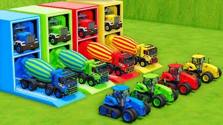 Garage with Colors - ALL MIXER TRUCK WITH DOUBLE FLATBED TRAILER TRUCK, KENWORTH, VOLVO, CLAAS AXION