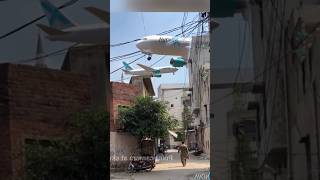 Airplane flying very close to homes in karachi pakistan fear the people #airforce #airplane #airport