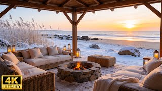 Cozy Winter Morning Ambience ❄ Peaceful Piano Music with Crackling Fireplace & Ocean Waves for Relax
