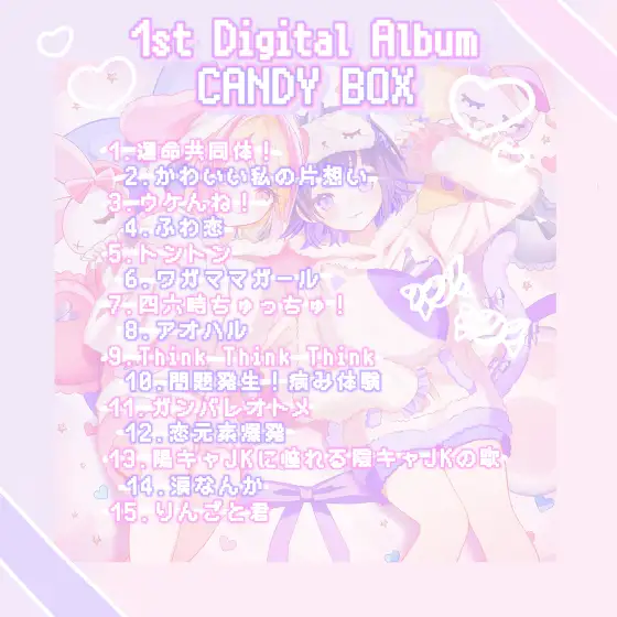 🍬🍬🍬🍬🍬🍬🍬🍬🍬🍬🍬🍬🍬音莉飴「CANDY BOX」の収録楽曲も解禁❕🩵🩷💜びっしり15曲…❕3曲目の「ウケんね!」という楽曲は新曲です❕曲名ウケる😸👍🏻歌詞がいつもの音莉飴とは少し違うカモ❔楽しみにしていてください❕🫶🏻︎🌟🍬🍬🍬🍬🍬🍬🍬🍬🍬🍬🍬🍬🍬#音莉飴#CANDYBOX