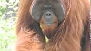 Jacky the Orangutan Bali Zoo eating his favourite Kangkung