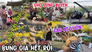 Prices are skyrocketing at the Long Xuyen, An Giang Tet flower market in 2026; customers are floc...