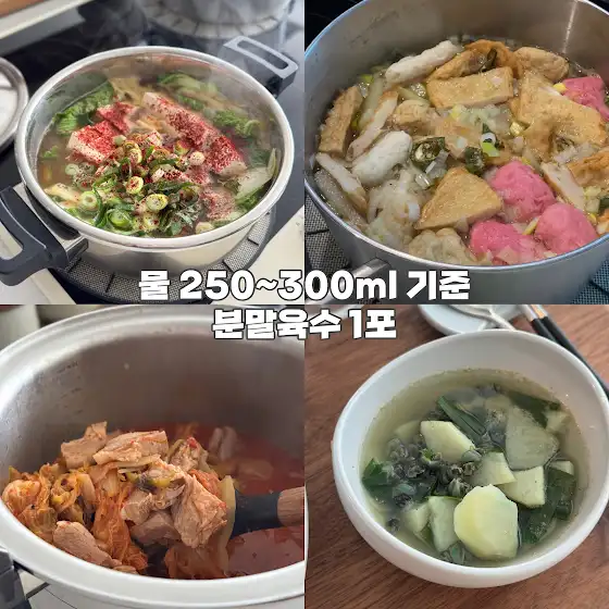 애들 돌보다가 빠른시간 안에 밥 준비 해야하는 분들 6시에 퇴근 돌아와 다시 밥 해야하는 직장인들 혼자 먹을 양만 끓이면 되는데 육수내기 번거로운 혼밥인들 에게는