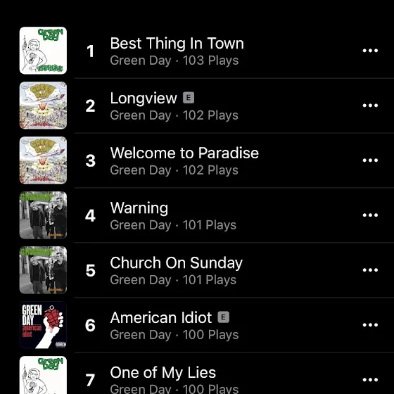 YAYYY IM SO HAPPY WITH MY MUSIC REPLAY ❤️🩹 OMG I love green day!!! 🎉