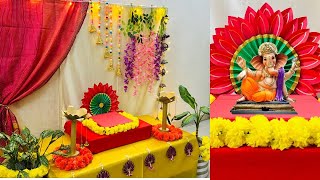 Ganpati decoration idea for home|traditional backdrop decoration idea for upcoming festival #ganpati