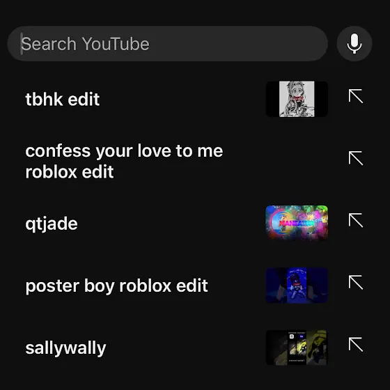 last 5 youtube searches ( no deleting or editing )