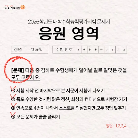 수능을 앞둔 모든 분들을 위한 하트베어의 응원 도착 🧸🧡