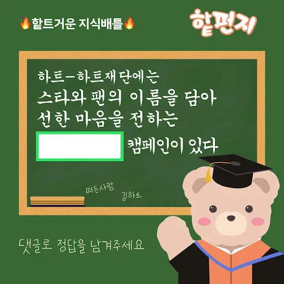 🎤 오늘의 문제 : “하트-하트재단의 팬기부 캠페인을 맞혀라!”