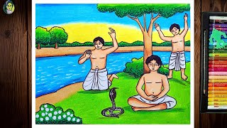 Beautiful Mountain Village Scenery Drawing | Village Scenery Drawing Easy | How To Draw Village Easy