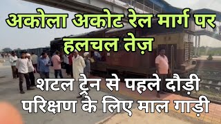 akola|akot|अकोला अकोट के बीच रेल मार्ग परीक्षण के लिए दौड़ी मालगाडी |शटल सेवा शुरू होने की बड़ी हलचल