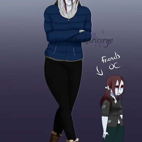 Serenas original design wasn't that different from how I drew her, except I did give her more weather appropriate clothing! Her skin and face are pretty much the same but I did try to make it more obvious she died of frostbite. She was fun to draw!