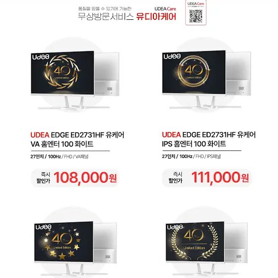 안녕하십니까, 무상방문케어 서비스 제공하는 No.1 국민모니터 유디아 입니다.🥰 항상 저희 유디아 브랜드를 사랑해주시는 많은 분들께 감사드립니다. 제이씨현시스템(주) 창립 40주년 기념🎁현재 유디아는 많은 고객분들의 성원에 힘입어, 컴퓨존에서 앵콜 이벤트를 진행하고 있습니다.!🎁 이벤트 기간 ~ 24. 04. 14일(일) 까지!