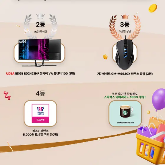udeaevent@jch.kr로 성함, 연락처, 상품평 캡처본을 보내면 신청 완료~