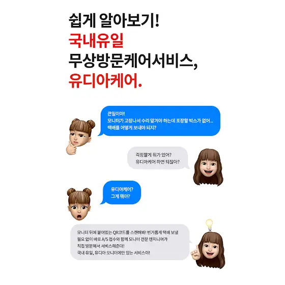 안녕하십니까, 무상방문케어 서비스 제공하는 No.1 국민모니터 유디아 입니다.🥰