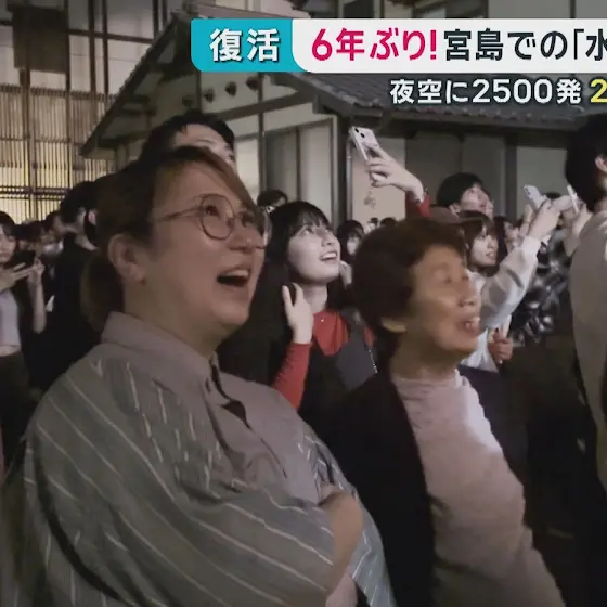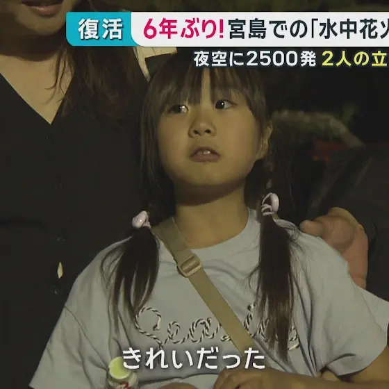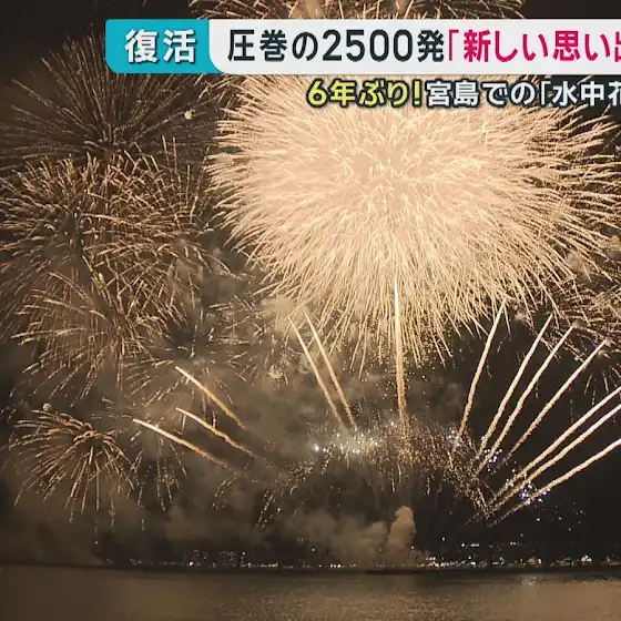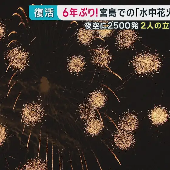 宮島での水中花火大会が6年ぶりに復活しました。圧巻の2500発。成功に向け奮闘した2人の立役者を取材しました。