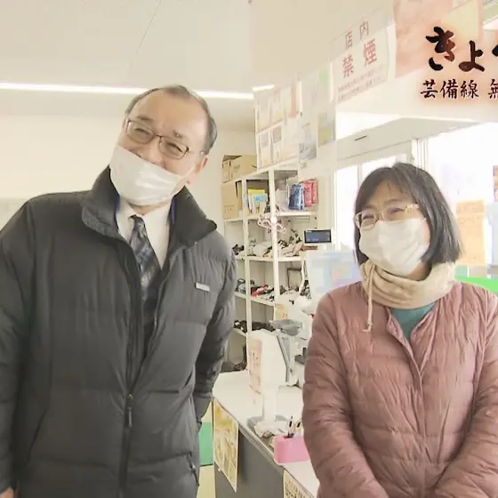 秘境駅といわれるJR小奴可駅。JR西日本から委託され約40年にわたりここで乗車券を販売する林嘉啓さんと妻の千鶴さん。駅前の小さなスーパーを営みながら、決して多くはないお客さんを日々送り出し、出迎える。