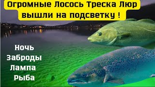 Fish in the Light! Huge Salmon and Cod Underwater! Underwater Lights Brought Big Fish Close – Nig...