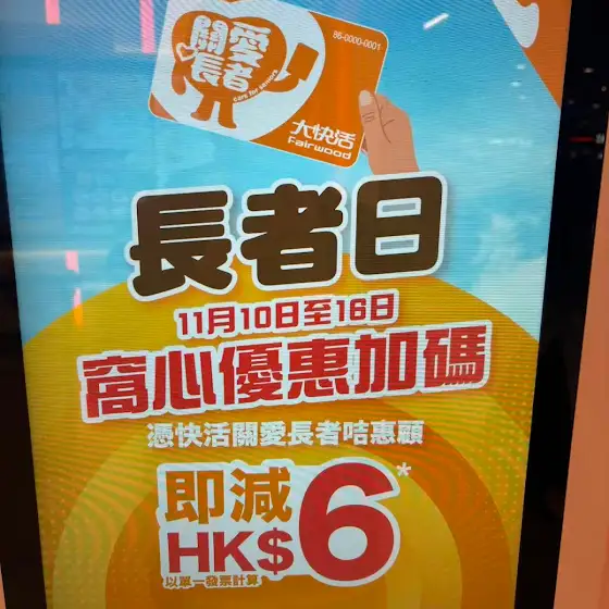 香港長者日🚨11月10-16日 大快活減 HK$6!憑大快活既關愛長者卡即享減$6,咁下午茶都唔洗$30有找。
