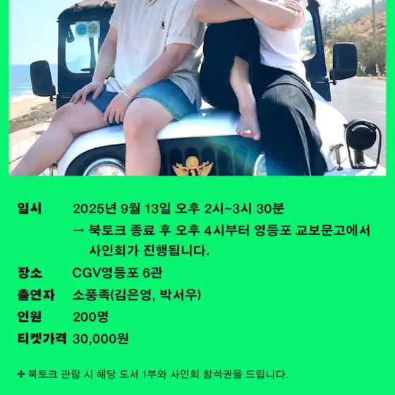 - 북토크 관람시 도서 1부+별도 굿즈 제공