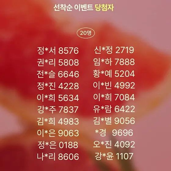 - 상품 발송: 문자 통해 당첨 사실 안내 후, 구글폼 제출 주소로 3일 이내 브랜드측 개별 배송