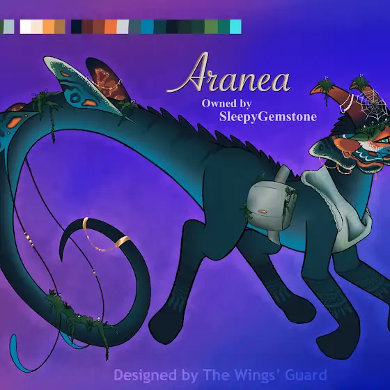 Design Contest entry for @SleepyGemstone . My take on Aranea was that she’d have all these butterfly design elements but not have any wings, which would encourage her to look through and collect various plants and mushrooms.