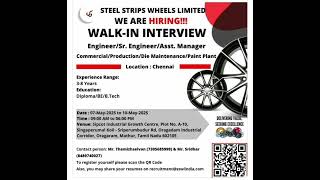 #jobinsteelstripswheellimited #jobinchennai #jobforbe #jobforbtech #walkininterview