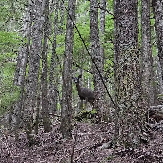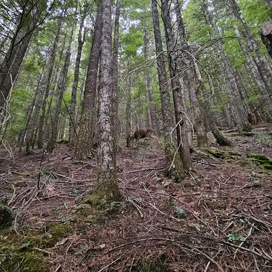 Зустріли на шляху трьох таких красунчиків. Зовсім не боялися людей, розглядали нас з цікавістю, як і ми їх). Це колумбійський чорнохвостий олень, який мешкає від Тихоокеанського північного заходу Сполучених Штатів до узбережжя Британської Колумбії в Канаді. Вони харчуються сезонно: взимку та весною — дугласією, західним червоним кедром, чорницею, салалом, папороттю, лишайниками; з кінця весни до осені — травами, ожиною, яблуками, знітом, безсмертником, різнотрав'ям, лососевою ягодою, салалом, кленом.