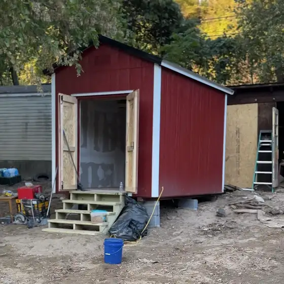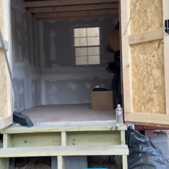 This tiny shed home is done! A bed was delivered last night and the new owner will be sleeping in a clean warm space tonight!!! 🙌🏻🙌🏻🙌🏻