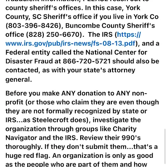 My silence doesn’t mean everything was fixed in WNC. We actually have more needs coming in every day.