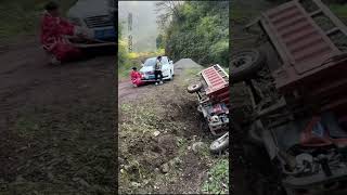 A huge rock had fallen from the mountain, so a girl and a boy helped very well and cleared the road.