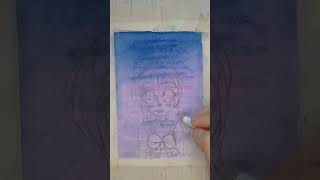 16 Video. Mini cuadrito✨ el fondo está pintado con acuarela de #crayola #drawing #arte #dibujo