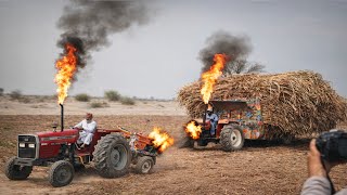 MF 385 vs Al Ghazi Tractor | Heavy Sugarcane Trolley Pulling Test | Ultimate Tractor Power Challenge