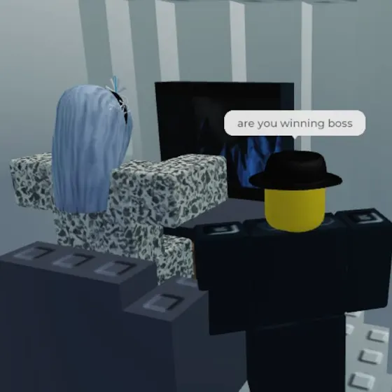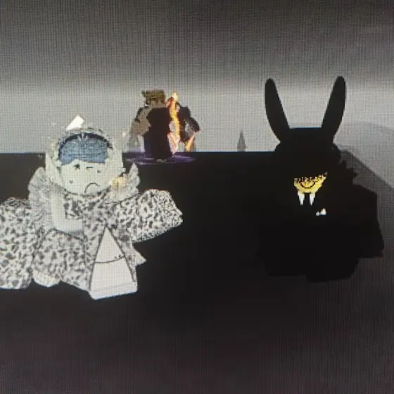 I was playing EVADE dressed as a Mafioso (Made by my dear friend ✨) when I met someone else cosplaying as Eunoia! This person was super nice to me until they had to leave :(