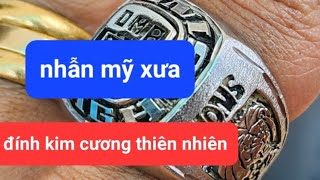lô nhẫn mỹ xưa đầu xuân bạc xưa có, vàng 10k 14k kết hợp kim cương thiên nhiên, nhẫn mỹ quân đội xưa