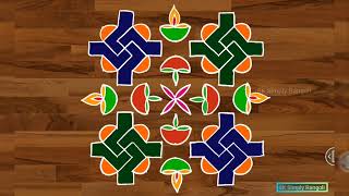 Beautiful flower diya kolam with 15x8dots| Big rangoli design for festival| colorful Pandaga muggulu