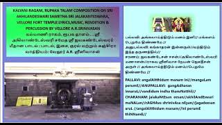 Kalyani ragam,Rupaka talam song on Sri Jalakanteswara,Vellore Fort temple by Vellore A R Srinivasan