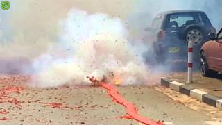 Big fireworks on the street with police